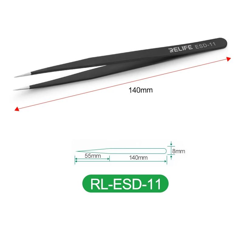 Anti Static Straight Tweezer Black RELIFE RL-ESD-11