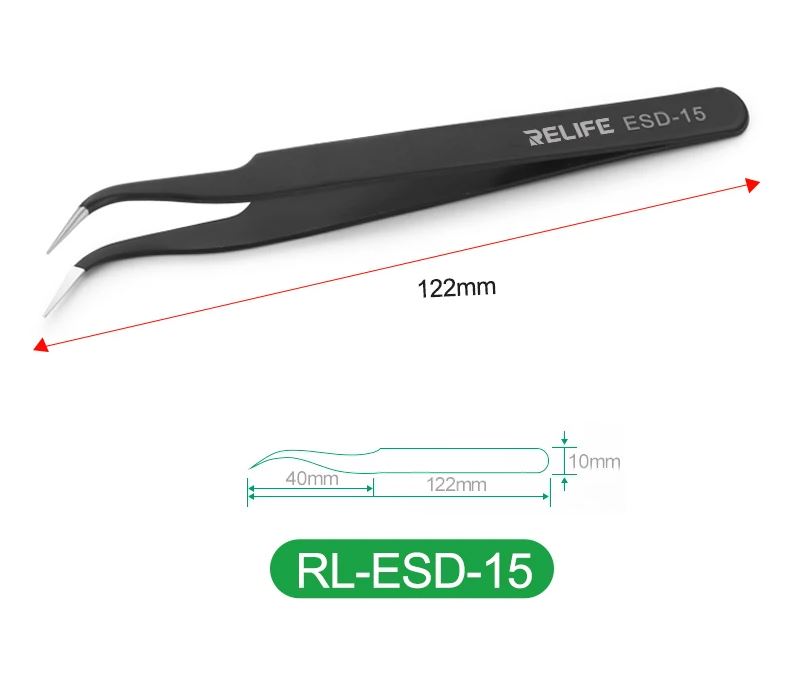 Anti Static Straight Tweezer Black RELIFE RL-ESD-15