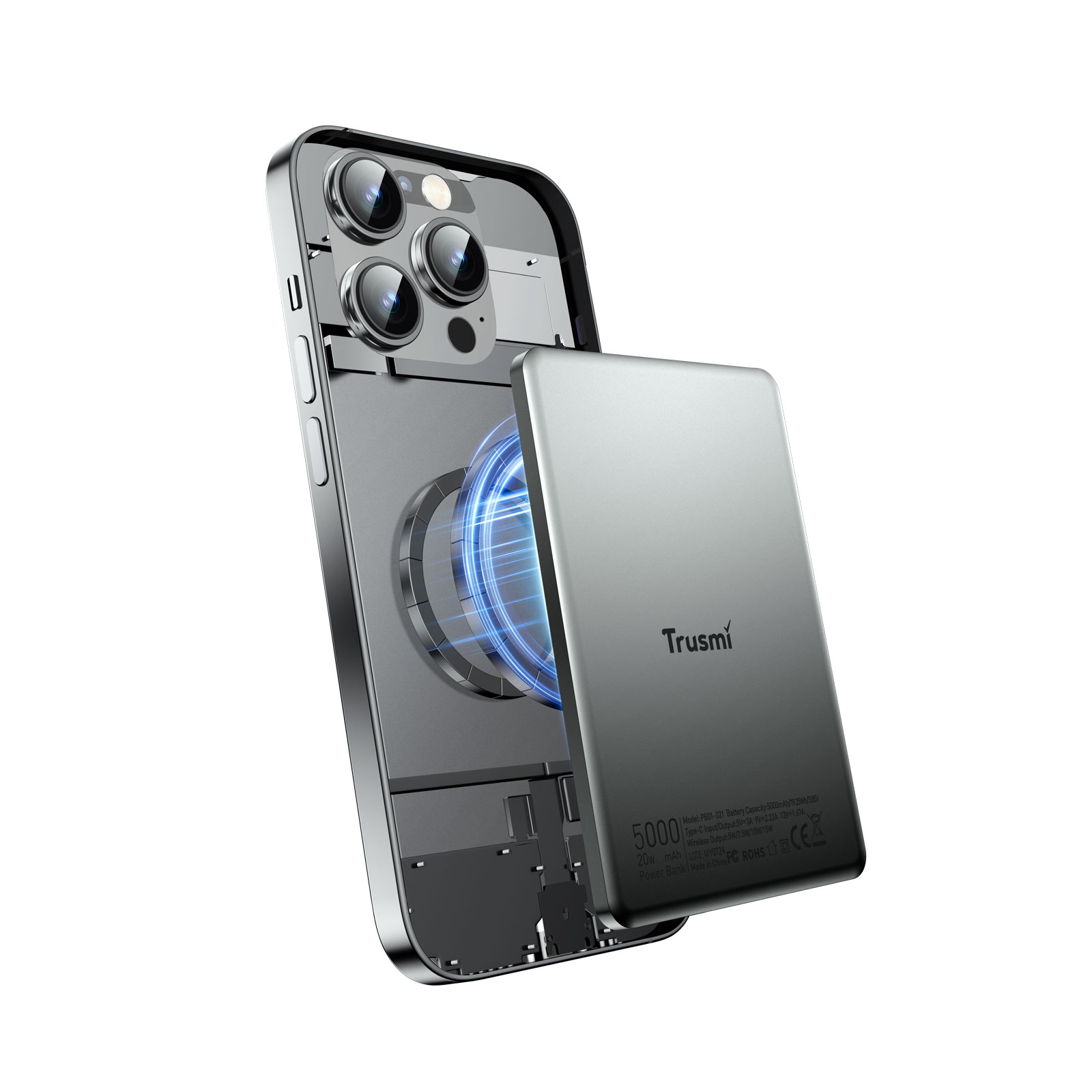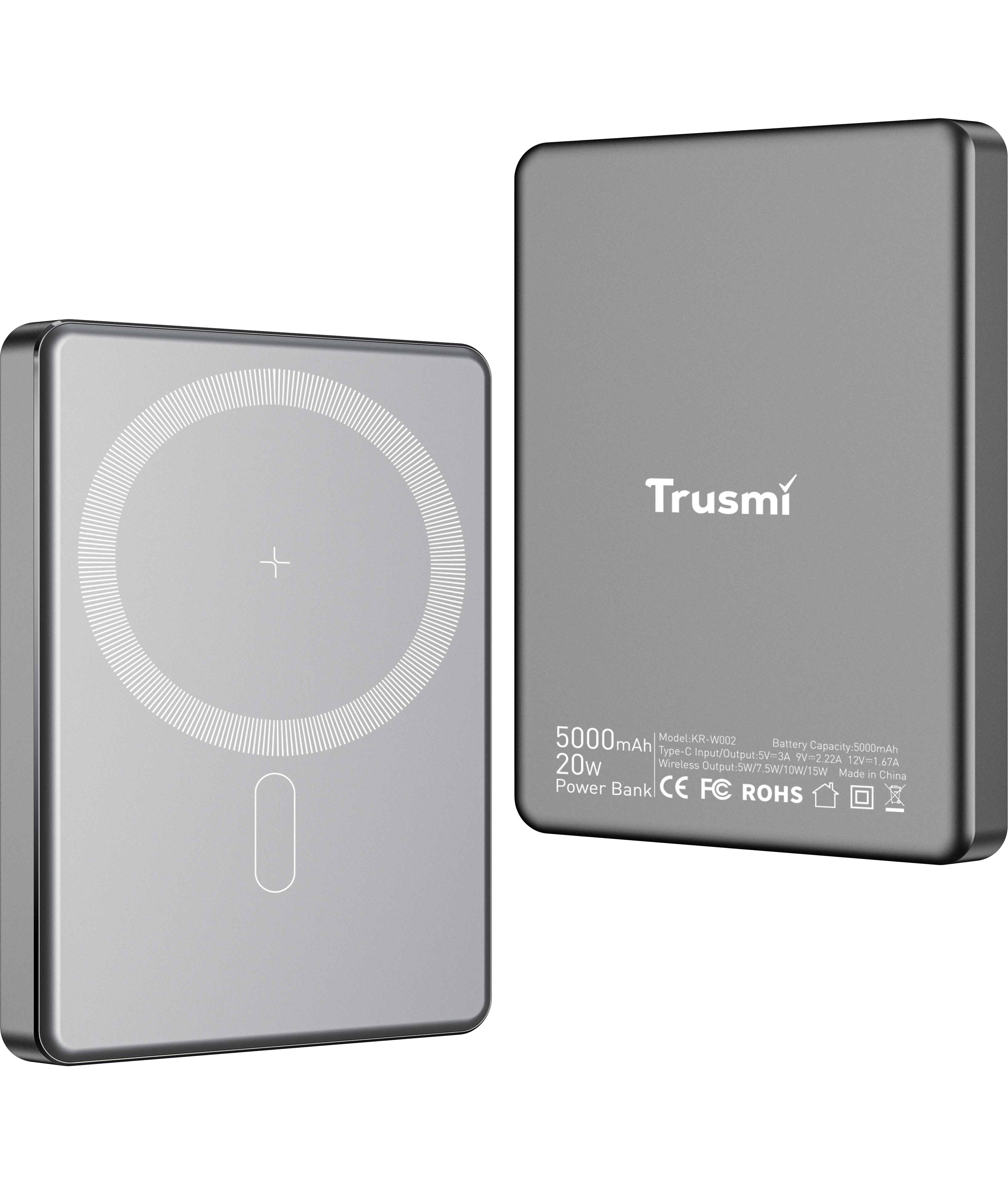 Trusmi PD20W Ultra thin MAGNETIC WIRELESS Powerbank 5000mAh Gray PB01-021