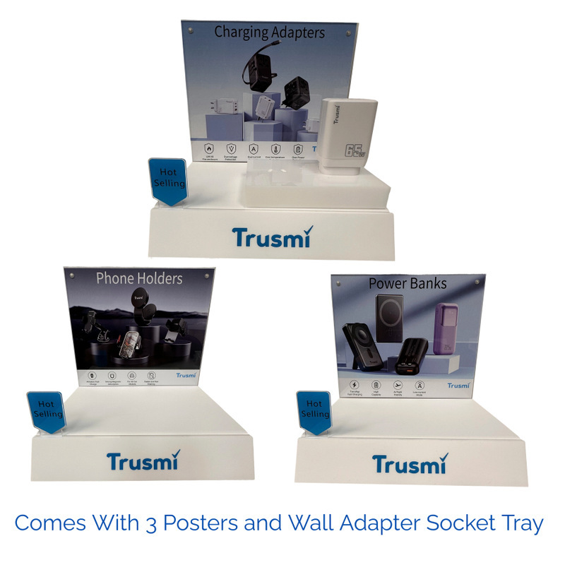 Trusmi Retail Display Stand (With Wall Adapter Socket Tray & 3 Posters)